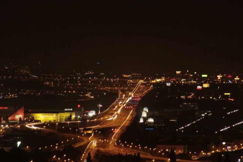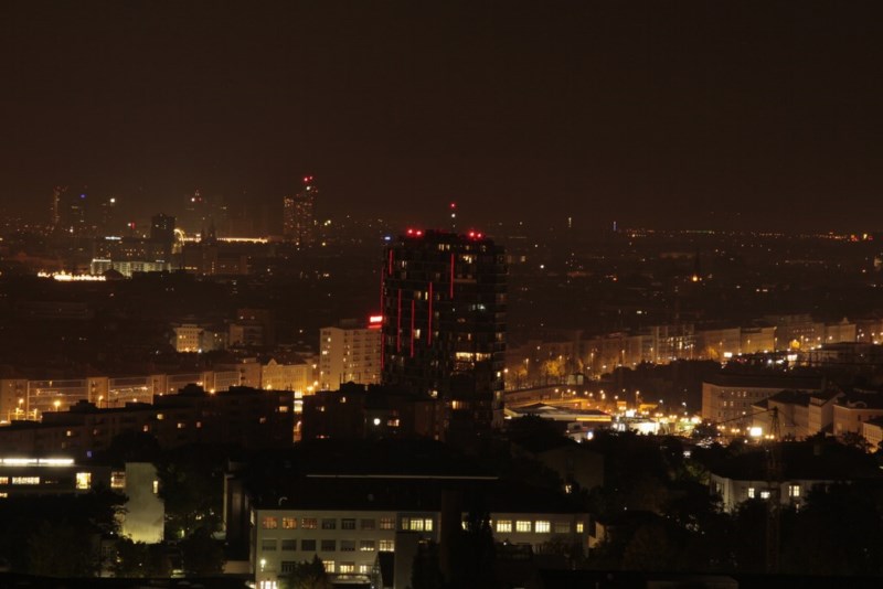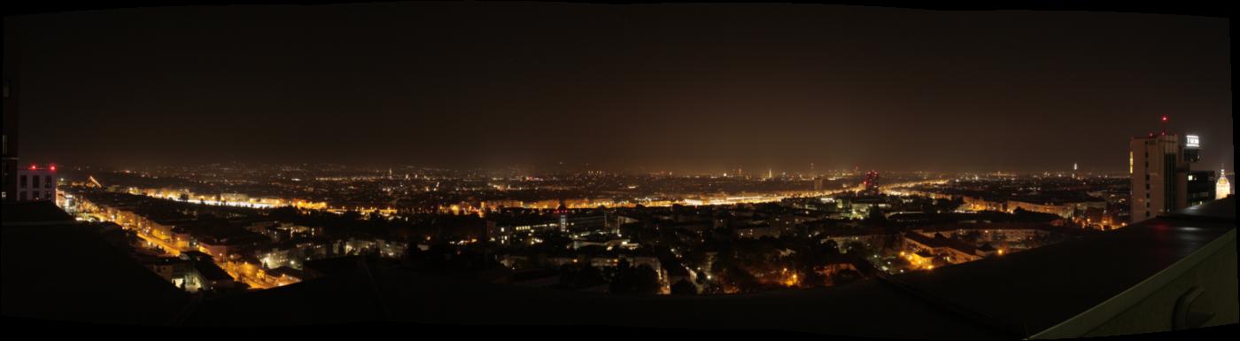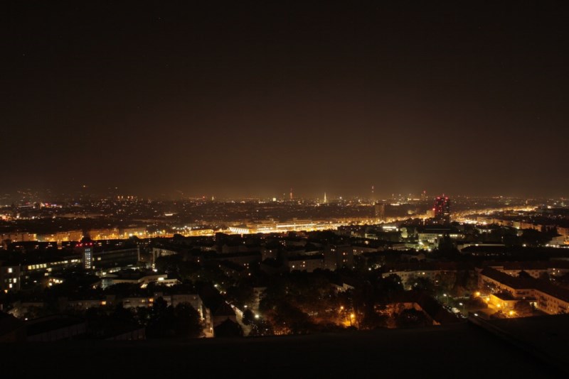 Wien bei Nacht 2010 - Fotografiert von der Dachterrasse vom Wien-Süd Tower im 27. Stock aus